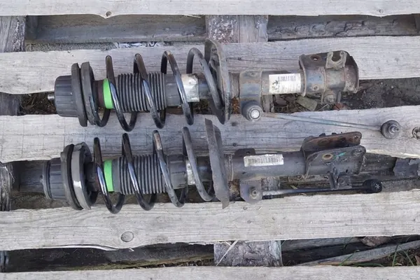 Ammortizzatori anteriori usati con molle per Fiat Bravo II, con marcature OEM 50708892 come mostrato nelle immagini. Questi pezzi provengono da un veicolo smontato in Germania e presentano segni normali di utilizzo e corrosione. Le marcature delle molle sono visibili nelle immagini. Ritiro locale disponibile a Czarnożyły, vicino a Wieluń, Voivodato di Łódź.