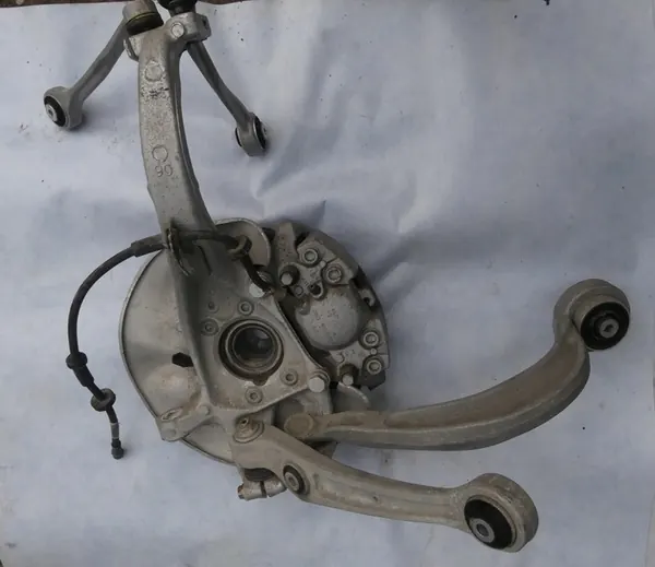 Componenti di sospensione anteriore tra cui braccio di controllo, mozzo, disco freno, pinza e pastiglie freno per AUDI A6 C7 LIFT, prodotto nel 2016 con 20 km di percorrenza. L'auto aveva un colore carrozzeria bianco LS9R. Condizioni molto buone. Le parti elettroniche non sono restituibili. OEM: bt-cars-32361.