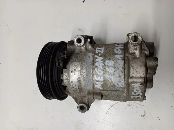 Compressore aria condizionata usato per Renault Megane II 1.6 B. Numero di parte: 8671016163. Le foto mostrano lo stato reale del pezzo. I pezzi sono contrassegnati prima della spedizione.