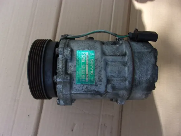 Compressore aria condizionata per Volkswagen Golf IV 1.4 16V. Numero di parte OEM: 1J0820803F. Condizione: Usato. Parte di qualità secondo gli standard GVO, contrassegnata con il logo del produttore (OEM, OES). Adatto per automobili. Peso del prodotto con imballaggio: 5 kg. ID del compressore: SD7V16. Versione europea.