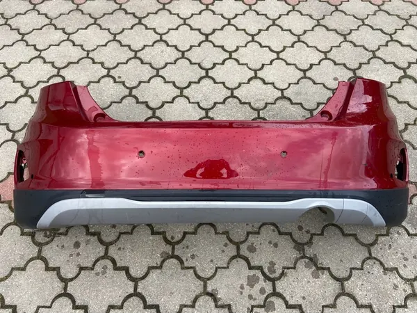 Paraurti posteriore usato per Ford Fiesta MK8 (2017-2023) in rosso rubino, con 4 sensori di distanza di parcheggio (PDC). Questo pezzo è di qualità OEM, verniciato e adatto per veicoli privati. La condizione è usata e può essere emessa una fattura IVA. Il paraurti è prodotto da Ford OE.
