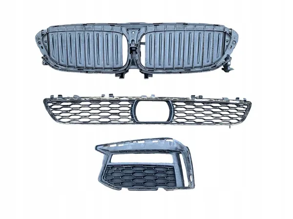 Griglia centrale paraurti per BMW 5 G30, numero di parte OEM 51118064931. Il prezzo si riferisce solo alla griglia centrale. La condizione è visibile nelle immagini fornite. Si prega di esaminare attentamente le immagini.