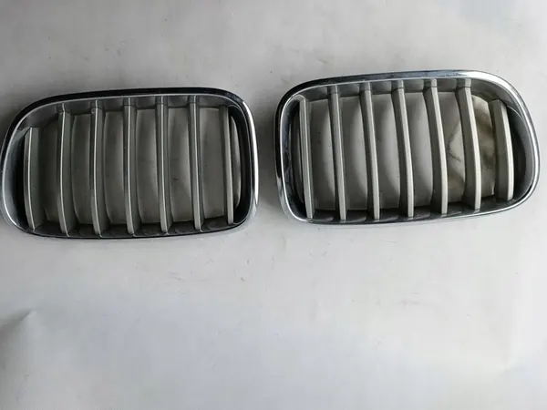 Griglia completa, anteriore sinistra, parte originale usata con segni di utilizzo per BMW X3 (F25) 2010-2014. I numeri OEM includono 51117237421, 51117237422, 51.11.7.210.725, 51.11.7.237.422 e 51.11.7.237.421. Sostituzioni compatibili: 6502-07-0093998P e 6502-07-0093997P.