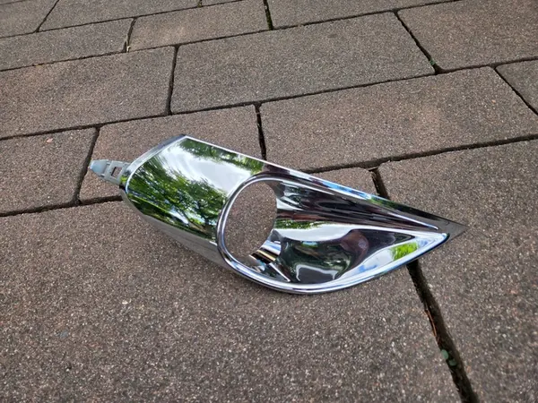 Griglia faro antinebbia destra originale in cromo per Renault Scenic III Lift Xmod, numero di parte OEM 261A25912R, adatta per modelli dal 2003 al 2016. C'è una rottura visibile su un punto di montaggio, come mostrato nelle foto allegate. Il cromo è in buone condizioni. Questa è una versione europea. L'articolo è venduto come appare nella foto reale.
