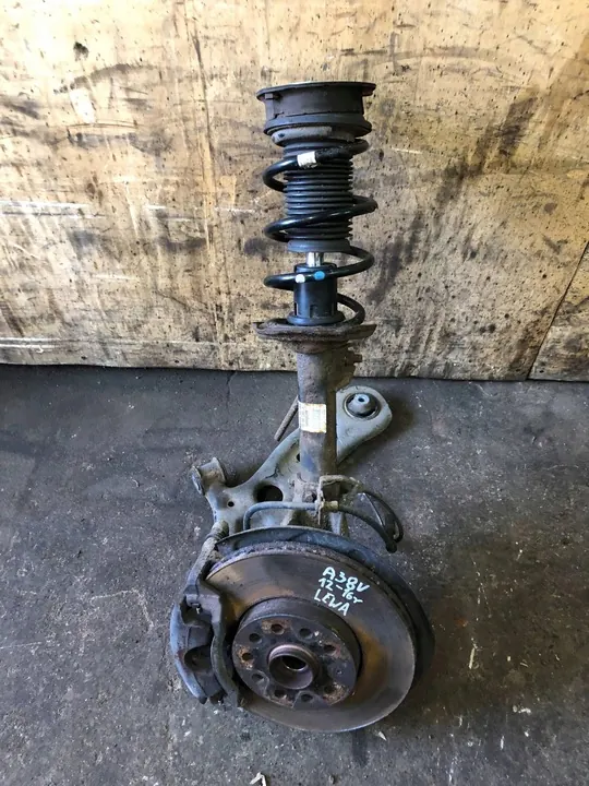 Mozzo di sterzo sinistro McPherson per Audi A3 8V e Golf VII, compatibile con modelli 1.6 e 2.0 TDI. Il pezzo è completamente funzionante e pronto per il rimontaggio, con normali segni di utilizzo. Numero di parte: 5Q0413023DB.