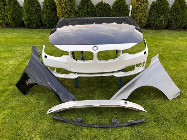 Parafango anteriore sinistro originale usato per BMW 3 F30 F31, danneggiato come mostrato nella foto. Il pezzo è OEM con il numero di parte 41007438439. Sono disponibili anche altre parti per questo veicolo. Condizione: Usato.