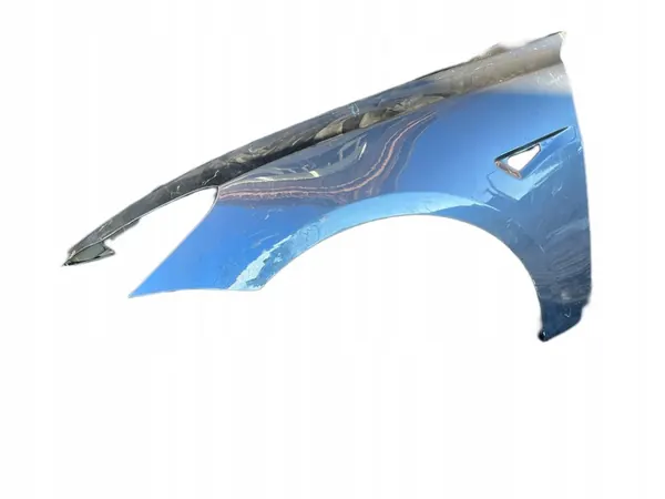 Questo annuncio è per un parafango anteriore sinistro per la Tesla Model 3. Numero di parte OEM: 1081401-E0-C, intercambiabile con 1081401-E0-D. Colore: grigio, codice vernice: PMN. Condizione: usato, rimosso dal veicolo. Il parafango presenta danni significativi nella parte anteriore e un bordo leggermente piegato vicino al parabrezza. È stato parzialmente riparato per adattarsi alla forma del veicolo.