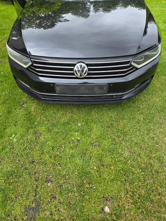 Assemblaggio anteriore completo da una VW Passat B8 in colore nero LC9X. Il set include un cofano, due parafanghi, un paraurti completo con 4 PDC, lampade standard e un pannello anteriore completo con radiatori TDI. Parti usate in condizioni come mostrato nelle immagini. Altre parti disponibili per questo modello.