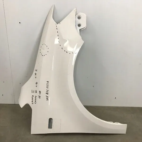 Parafango anteriore destro per VW Caddy 3 III facelift, anni di modello 2015-2020, numero di parte OEM 2K5821022B. Il pezzo è usato e presenta danni visibili come indicato nelle foto. Le immagini rappresentano le condizioni reali del parafango. Eventuali danni, riparazioni o segni di utilizzo sono contrassegnati. Foto aggiuntive disponibili su richiesta.