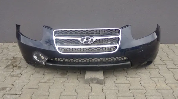 Paraurti anteriore per Hyundai Santa Fe II, anni modello 2006-2009. Questo è un pezzo usato che ha subito una riparazione professionale. Il paraurti è destinato alla parte anteriore del veicolo e necessita di verniciatura. Pesa 7 kg ed è un pezzo di ricambio originale (OEM) con la designazione di qualità O, che presenta il logo del produttore del veicolo. È disponibile una fattura.