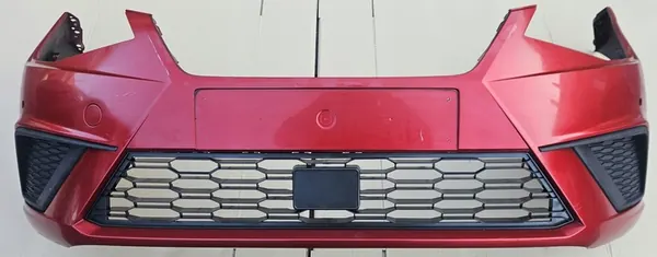 Paraurti anteriore originale per Seat Ibiza 6F, numero di parte 6F0807221D. Il paraurti è usato e non è stato riparato. I punti di montaggio sono integri e pronti per la verniciatura. È incluso anche un supporto di montaggio sinistro.