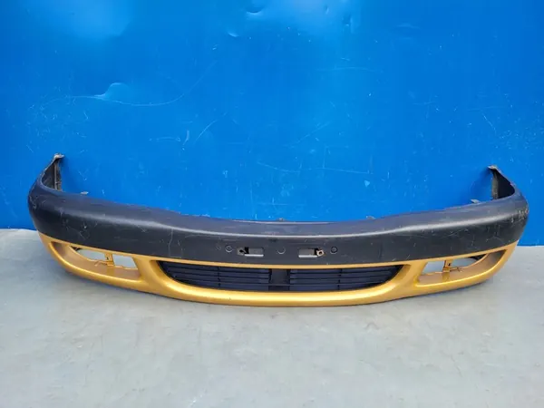Paraurti anteriore originale usato per TOYOTA COROLLA E11 LIFT. Numero di parte: 52119-02170. Anni: 2000, 2001, 2002. Il paraurti ha tutti i supporti, incluso uno rotto per la targa (contrassegnato nella foto). Non è riparato e presenta graffi e segni visibili.