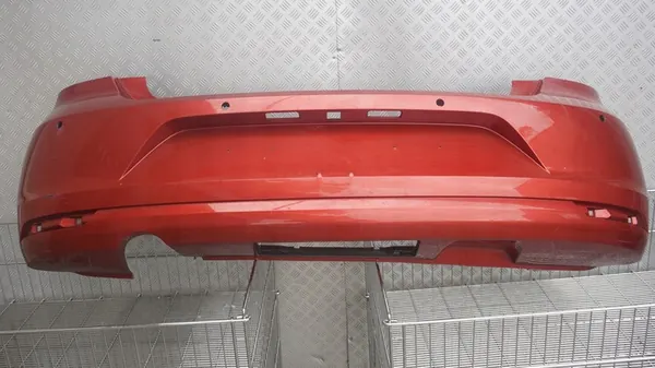 Paraureti posteriore disponibile per VW Polo V Lift. Questo pezzo usato mostra segni di usura, inclusi graffi e scheggiature, chiaramente visibili nelle immagini fornite. Il numero di parte OEM è 6C6807421A.