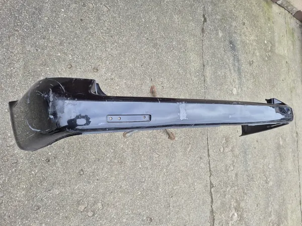 Paraurti posteriore per VW Transporter Multivan/Caravelle T5 dal 2003 e modelli post-facelift dopo il 2009. Parte originale con un supporto inferiore mancante. Aree riparabili e usura visibili nelle foto. Colore da verniciare.