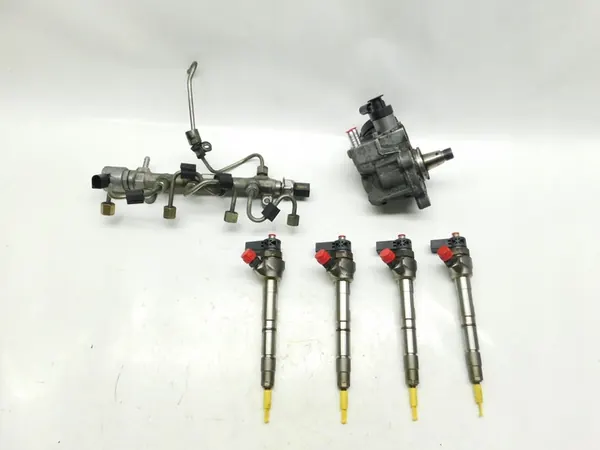 Sistema di iniezione carburante originale usato che include 4 iniettori (OEM: 04L130277AC), pompa del carburante (OEM: 04L130755E) e rail del carburante (OEM: 04L089H). Adatto per motori 2.0 TDI CR (110-150 CV), prodotti nel 2019. Veicoli applicabili: