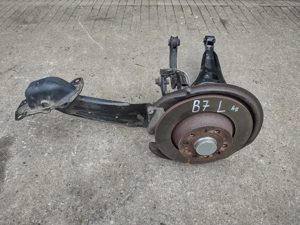 Snodo posteriore sinistro originale per VW Passat B7 (3AA) e CC (3C8) dal 2010 al 2014. Il pezzo è in buone condizioni di funzionamento con segni di utilizzo. I numeri di parte OEM includono 3C0505435F, 1K0501529F e 5Q0505323D.