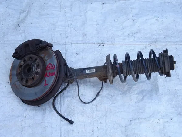 Sospensione anteriore sinistra per VW Golf V 5 + Plus, 1.9 TDI, 105 CV. La sospensione è montata sul mozzo con 4 viti. Anni di produzione: 2005 - 2009. L'articolo è funzionante e le condizioni visive sono come mostrato nelle foto. Questa è una versione europea con guida a sinistra.