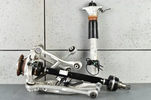 Parte di sospensione posteriore sinistra per veicoli BMW: M2 G87, M3 G80, M4 G82. Questo pezzo è usato ed è in ottime condizioni, proveniente da un veicolo smontato. È un prodotto originale. I numeri di parte OEM includono: Snodo: 8095657, Bracci di controllo: 2284777, 9504611, 2x 2284534, 2284533, Albero: 8089855, Ammortizzatore: 8091379. Tutti i pezzi provengono da veicoli BMW testati. Non offriamo sostituti o repliche. L'acquisto garantisce un prodotto 100% originale.