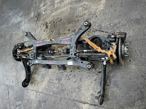 Set di sospensione posteriore completo per TUCSON IV e SPORTAGE V 4WD. Include snodo, telaio, bracci di controllo e assi. La condizione dei pezzi è visibile nelle immagini fornite. Sono disponibili due set completi.