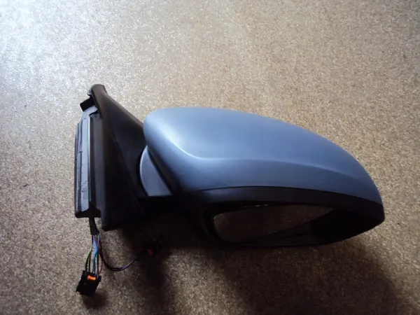 Specchio destro per Opel Corsa F (2019>) e Peugeot 208 (2019>). Lo specchio ha 10 fili e un indicatore di direzione rotto. È stata installata una nuova copertura dello specchio (da verniciare). Condizione: Usato.