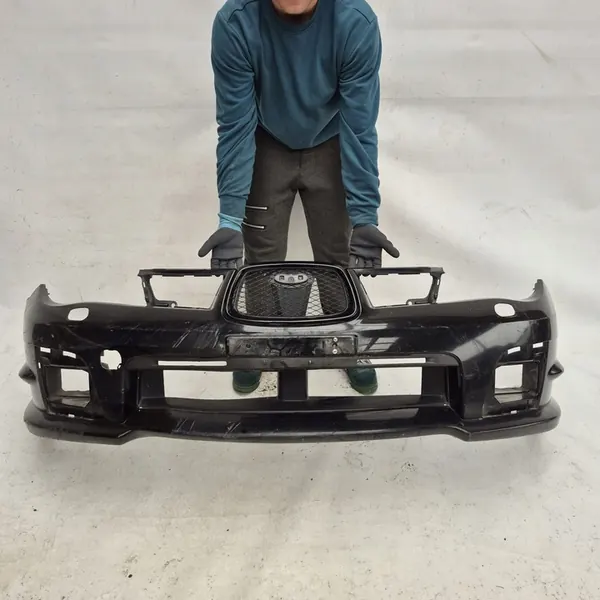 Paraurti anteriore per SUBARU IMPREZA II LIFT 05- WRX STI SEDAN, OEM 55504FE020. Le condizioni sono come mostrato nelle foto. La griglia e il paraurti presentano riparazioni minime visibili nelle immagini ravvicinate. Le foto rappresentano il prodotto in vendita, ma potrebbero esserci graffi aggiuntivi a causa di stoccaggio, movimentazione e trasporto di varie parti. A nostro avviso, ogni parte venduta richiede una nuova verniciatura.