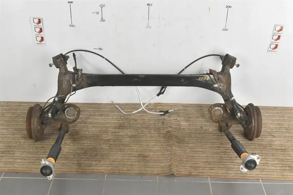 Trave di sospensione posteriore per Skoda Fabia II, numero di parte OEM 6Q0500051BB. Questo pezzo è usato e proviene da un veicolo con motore diesel da 1,6 TDI. È adatto per autovetture ed è classificato come pezzo di qualità Q, che è un pezzo originale con il logo del produttore. Il peso del prodotto con imballaggio è di 80 kg. La condizione dell'imballaggio è di sostituzione.